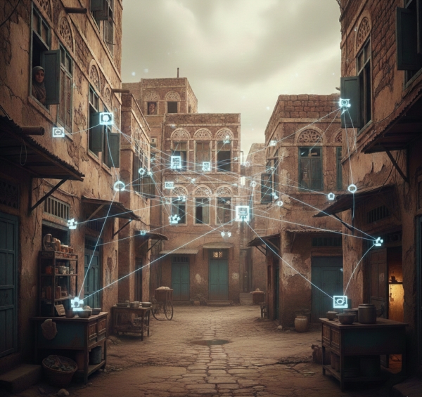 [ صورة تعبيرية عن شبكة المراقبة في الأحياء - بواسطة الذكاء الاصطناعي ]