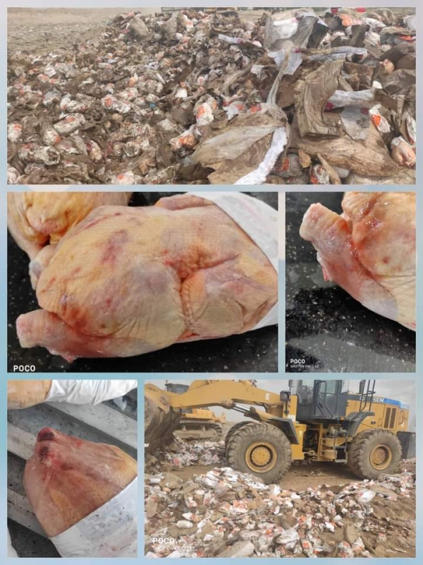 وقالت الهيئة في بيان مقتضب، إن مكتبها بميناء المنطقة الحرة أتلف 2066 كرتون من الدجاج المجمد والمستورد، بعدما اثبتت فساد الكمية وعدم مطابقتها للمواصفات القياسية المعتمدة بسبب إعادة تجميد المنتج بعد ذوبانه.