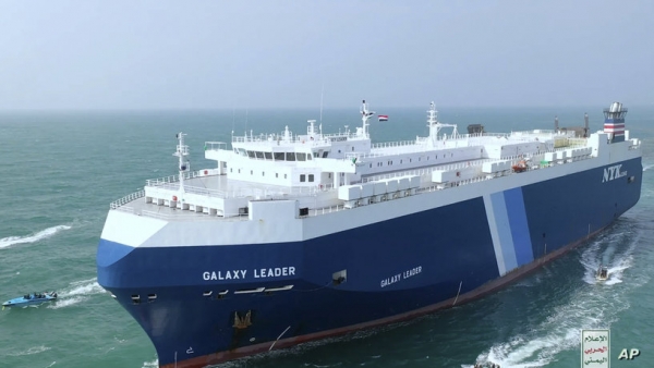 وجاء احتجاز السفينة "غالاكسي ليدر" وطاقمها الدولي المكوّن من 25 فرداً، الأحد، بعد أيام من تهديد الحوثيين المدعومين من إيران باستهداف السفن الإسرائيلية، على خلفية الحرب بين إسرائيل وحماس.