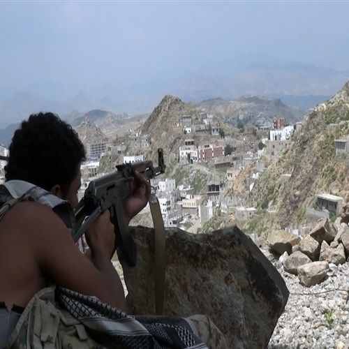 [ أحد أفراد المقاومة في بلاد الوافي غرب تعز ]