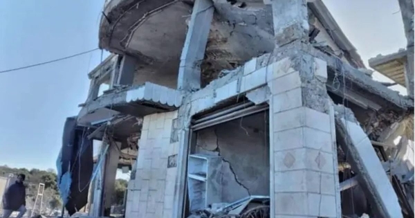 وبحسب المصدر، نتجت ثلاثة انفجارات قوية عن الهجوم الذي أحدث دمارا واسعا في "فيلا بمنطقة بطرايا في أطراف بانياس الجنوبية على الساحل السوري، يوجد ضمنها مجموعة تابعة للميليشيات الإيرانية لا يُعلم جنسياتهم حتى اللحظة".